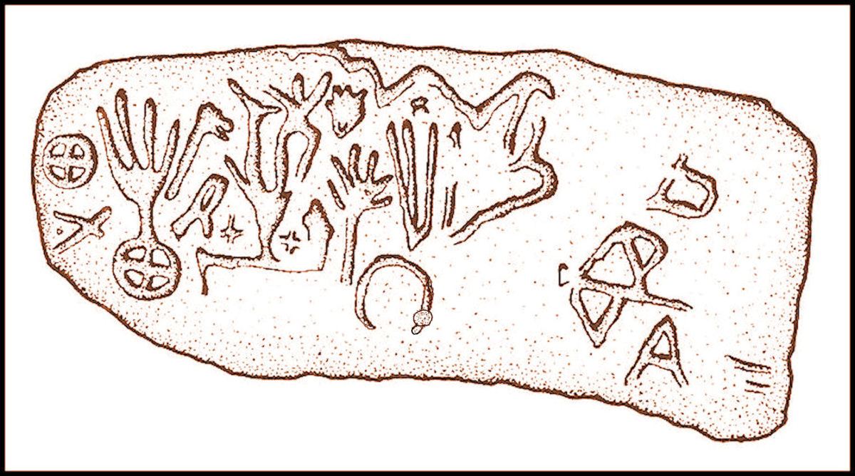 The tablet above is one of the few examples we have of the Apalache-Creek writing system. It is a mixture of ancient Bronze Age symbols, mixed with symbols from the Olmec and Maya civilizations. The symbols on the right, mixed with Roman letters state that Eleanor Dare and her daughter are buried in one tomb, while (probably) Joyce Archard is buried in the adjacent tomb.