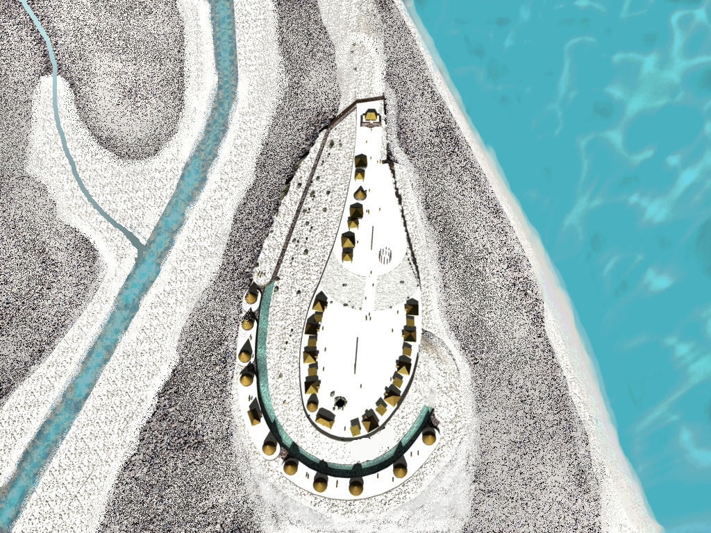 Sinkhole and Cave – In the northwestern section of the Lower Village is a sinkhole, which leads down to a cavern. Rainwater accumulates in the bottom of the cavern, so it also functioned as a cistern to store water. In the initial phase of the community’s occupation, this would have been the only convenient source of potable water by the residents. Such an asset made the site extremely valuable from a military perspective.