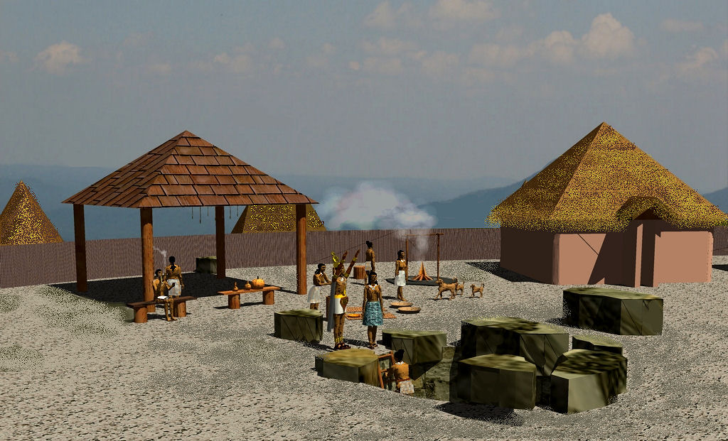 - Lower Village – On the southwest side of a large sloping ramp, were approximately 10 smaller square or rectangular houses. Some were built of stone. Others were wood-framed with post-ditch construction. This style of housing was typical of the Zoque Commoners in southern Mexico.