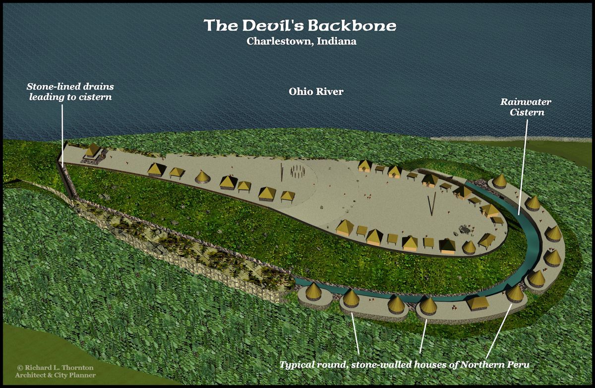I identified three indigenous American architectural traditions at the Devil’s Backbone site . . . Zoque (Gulf Coast Lowland Mesoamerican), Muskogean – (Gulf Coast Highland Mesoamerican) and Moche (Central Highlands of Peru). This strongly suggests that the occupants of this village were not indigenous to the Midwestern United States. They seem to be hybrids composed of bands from the Lower Southeast, southern Mexico and the central highlands of Peru.