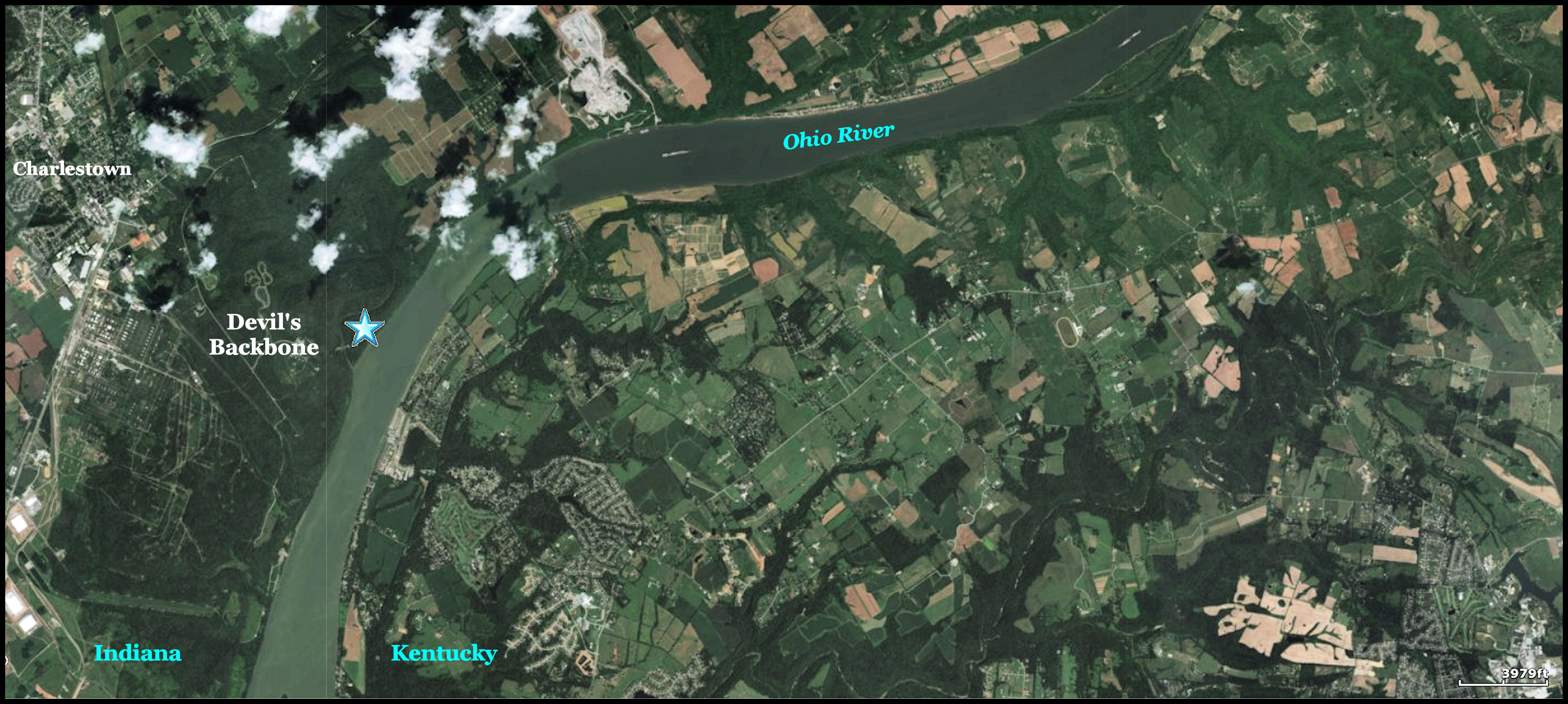 Devil’s Backbone is a rock formation and peninsula formed by the flow of Fourteen Mile Creek into the Ohio River. The escarpment rises to about 240 feet above the average elevation of the Ohio River. It is located within Charlestown State Park near Charlestown, Indiana and six miles downstream from Louisville, Kentucky. The Backbone is believed to have been formed by the processes of glaciation where a combination of ice sheet advances, melt water flows and a diversion of the Ohio River left an isolated bedrock ridge remaining between two valleys.