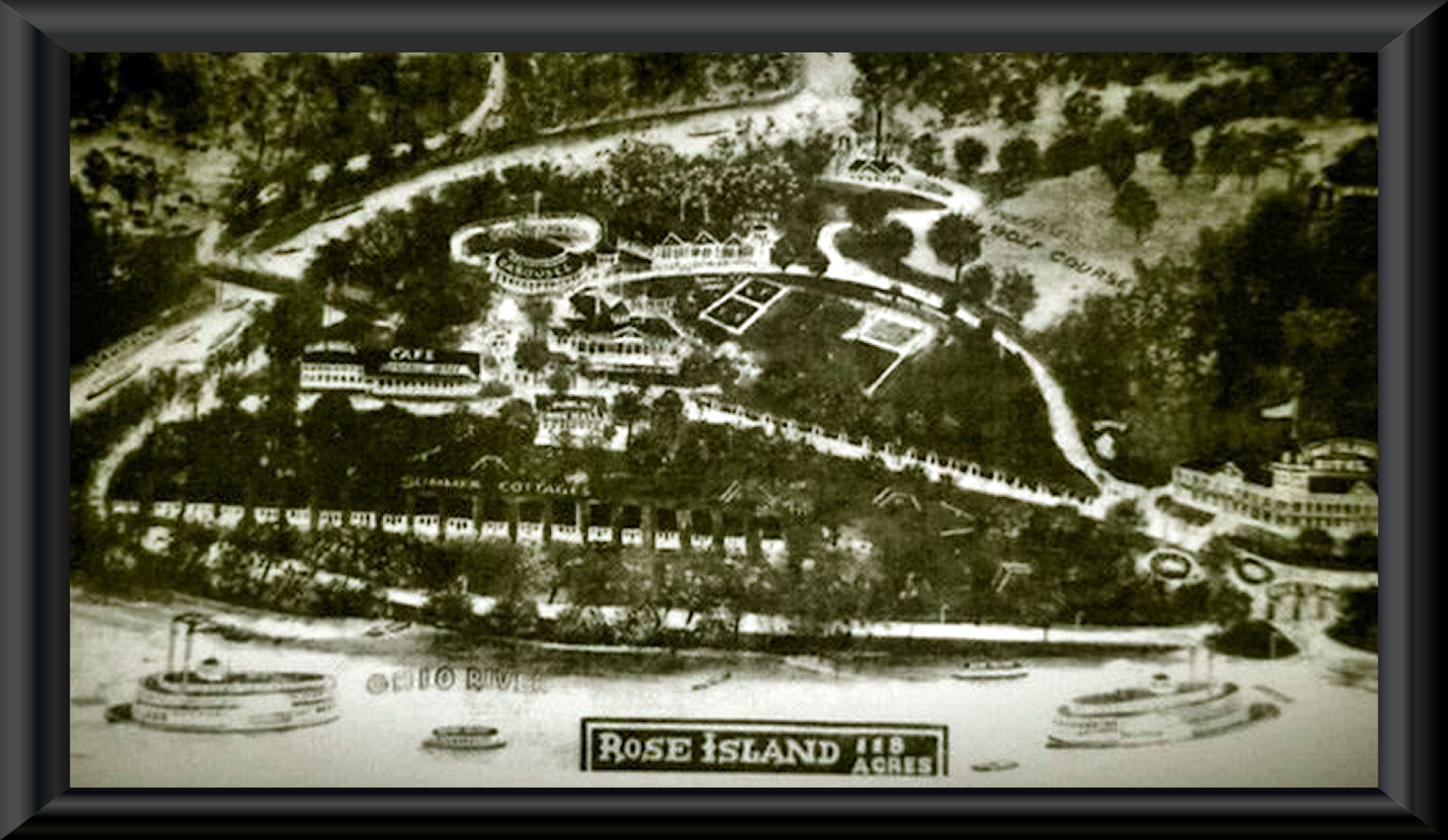 Rose Island, a Victorian Era amusement park, which remained popular until the Great Depression, was destroyed by the 1937 Ohio River Mega=Flood. It stood on the flood plain at the base of the ridge. The ruins of the amusement park are now incorporated into the landscape of the Charleston State Park. While grading was being done for the state park, a Moche-style figurine was found near the bank of the Ohio River. Earlier, another Moche-style figurine was found near the confluence of the Ohio and Tennessee River. It is on display at the St. Louis History Museum.