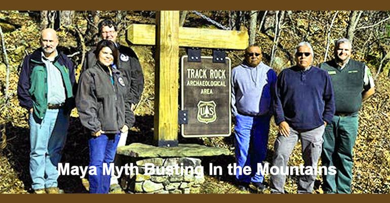 The articles dispatched by the Georgia Council of Professional Archaeologists and the US Forest Service archeologist showed how little these people knew about the subject, for which they claimed to be THE experts. All articles were accompanied by a photo of a glyph from Boulder 6 at Track Rock, which happens to be the Maya glyph mako hene or Great Sun. This symbol was also the logo for the PBS documentary, “Cracking the Maya Code,” so we assume that the experts did not see that TV program either.
