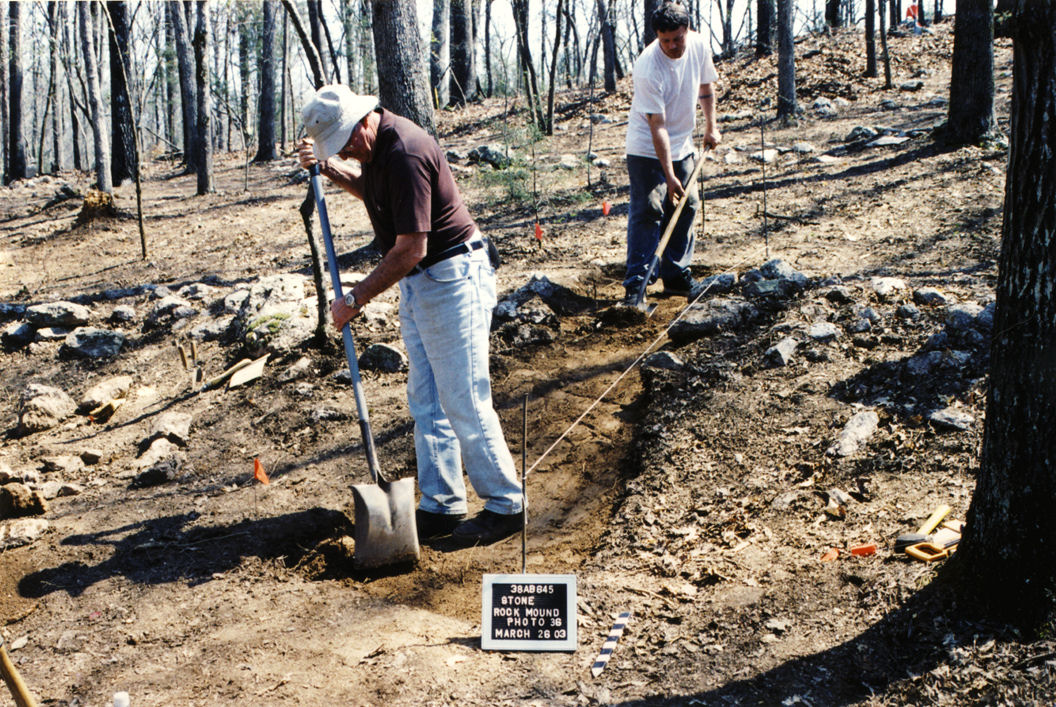 In 1886, Smithsonian Institute archeologists, Cyrus Thomas, identified over a hundred stone structures in northern Georgia. Archaeologist Robert Wauchope visited most of those sites in 1939, but most have never been investigated by an archaeologist since then. In 1955 and 1958, Harvard archaeologist, Phillip E. Smith did visit a few of the stone architecture sites, which had been recorded by Cyrus Thomas and Robert Wauchope. During that period, Arthur Kelly identified stone structures, including a Scandinavian style stone boat burial, adjacent to the Chattahoochee River near Roswell, GA. He also excavated the Bibb stone-walled terrace complex in Middle Georgia.