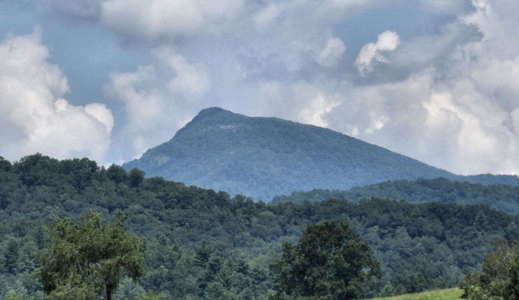 Photo Above: Even though Yonah Mountain dominates the horizon at many locations in this archaeological zone . . . and the view is quite spectacular from mountaintops . . . I could find no ancient architecture, which was oriented to Yonah. Most seemed to be oriented to Enotah Mountain, a much lower peak, southeast of Cleveland, GA or to Brasstown Bald Mountains, 18 miles to the north-northwest. The site is 22 miles southwest of the Track Rock Terrace Complex.