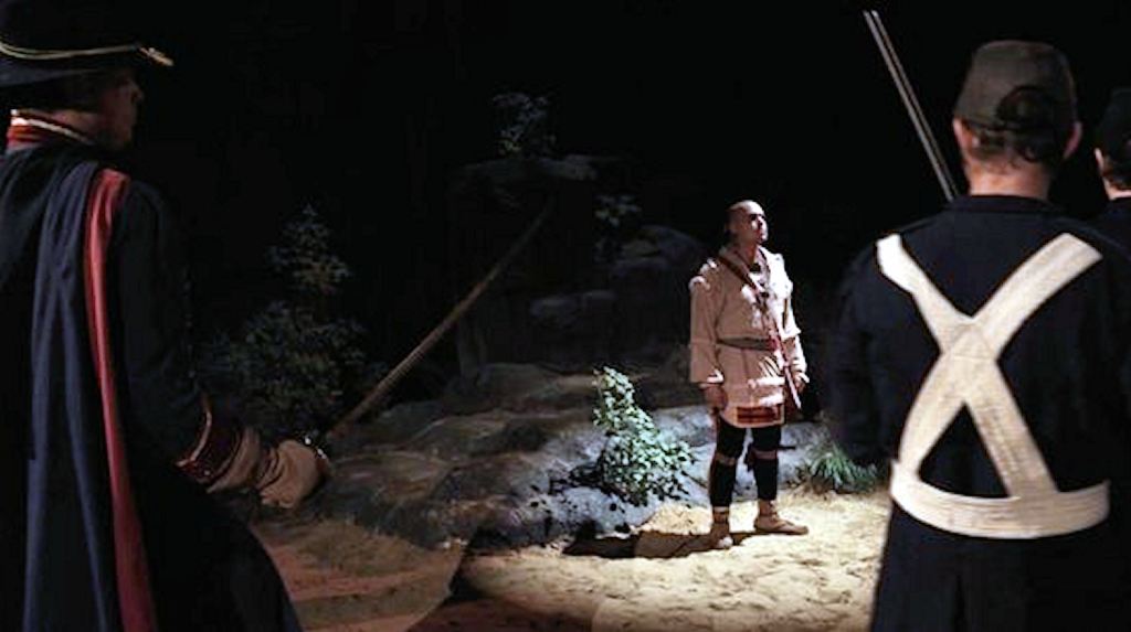“Unto These Hills” portrays the Native American martyr, Tsali, being shot by US Army soldiers in Civil War Era uniforms.