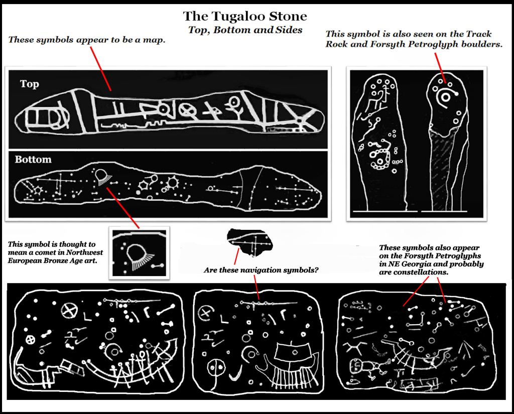 Since we now know that the largest rectangle at the Fritchy Site is a stone-walled building, there appears to be no difference between it and a Late Bronze Age temple constructed in Cádiz, Spain. This is not so implausible as it seems. The Fritchey Site is located on an ancient trade route, which begins on the Tugaloo River in Stephens County, GA, about 21 miles to the east of there. The carved stone block was discovered by laborers aroun d1795 and is on display at the Travelers Rest State Historic Site near Toccoa, GA. On this rock are carved many Bronze Age Scandinavian navigation symbols plus at least four Bronze Age ships. The truth is out there somewhere!