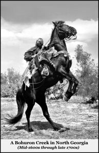 The Bohurons were the only known Native American tribe, east of the Mississippi River, to fight almost exclusively as cavalry or mounted rifles.  They were expert horsemen and “cowboys.”   They raised large herds of livestock rather than devoting much time to cultivating riverine farmlands.  The livestock were traded to other Creek tribes and white settlers for grains and vegetables.
