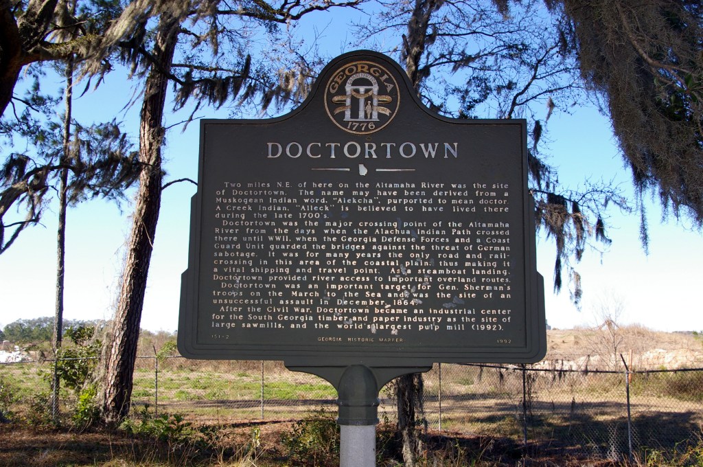 The Georgia State Historical marker claims that Doctortown was named after a Creek chief, named Aleck! That story is pure folklore.