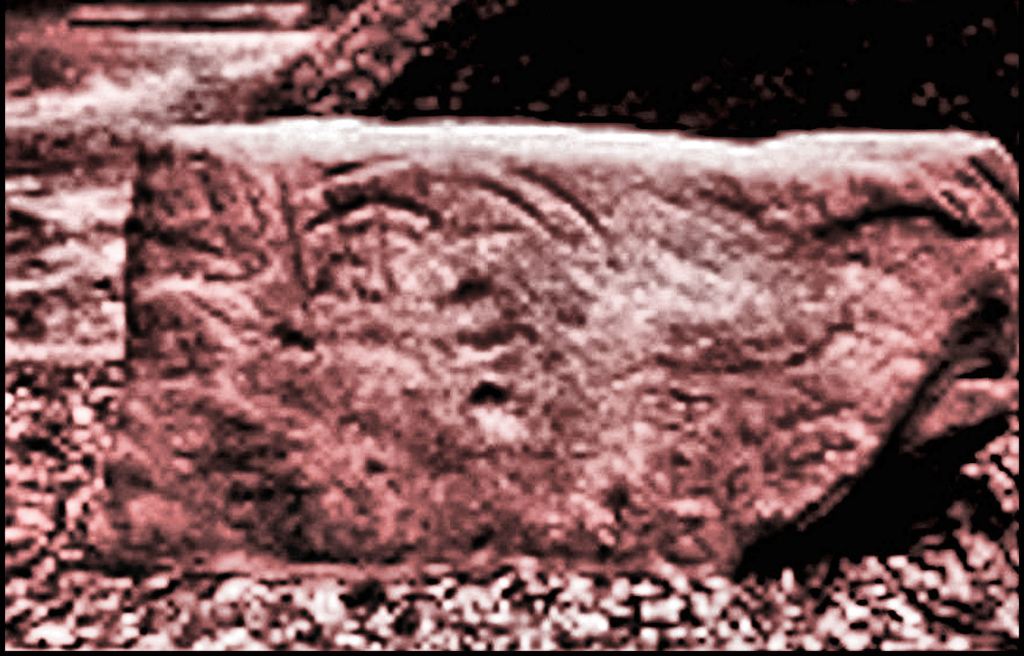 About a week later, I glanced at the photos of the rock and then enhanced them with the same software that I use to make ancient maps legible.  Many details appeared, which the Smiths had missed with charcoal rubbing.  I could now see several of the same glyphs that are on the Forsyth Petroglyphic Boulder, which was found on the Upper Etowah River. However, at the top of the rock on each side were strange parallel curving lines with many short perpendicular lines.  They looked something like the plans for curved buildings.  Out of curiosity, I did a 180-degree rotation command on the photo images.