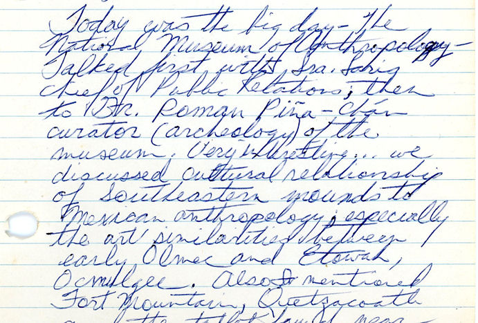 During 2012, Bill Torpy of the Atlanta Journal-Constitution was spoon-fed by some Georgia archaeologists a series of articles about the Track Rock Terrace Complex and “Mayas In Georgia Thing.” The public was deceived into thinking that no archaeologist believed that there had been cultural contacts between Mexico and the Southeastern United States, plus that I was an ignoramus, who was totally unqualified to discuss such things. Look at what the principal topic of discussion was on July 6, 1970 between one of the world’s greatest archaeologists and a “wet-behind-the-ear” Georgia Tech architecture student.