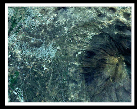The color slide at the top of this article is a metaphor for the technological changes that have occurred in the past 50 years. It was the first color slide that I took in Mexico. Almost immediately after the jet passed over the Gulf Coast beaches of Veracruz; a dense cloud cover concealed the landscape. Shortly after our “Fasten seat belts” light came on, the clouds parted and I quickly snapped a photo of the terrain of Mexico. The lowest elevations were about 8,000 feet (244 m) above sea level.