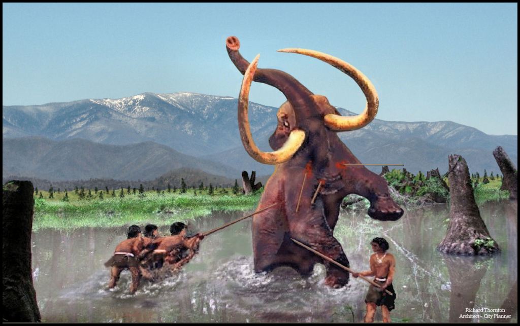 The next group of people to arrive hunted large mammals like the mammoth and mastodon.   Archaeologists had found large spear points used to hunt these animals and also places where the animals had been butchered.