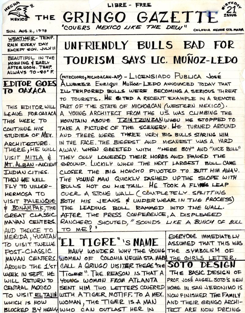 > alekmountain posted: ” By Richard L. Thornton, Architect & City Planner > Lago Patzcuaro, Michoacán ~ July 27-Aug. 2, 1970 One Summer in Mexico – > Part 25 First Issue of the Gringo Gazette! Seconds after I shot the photo > above, I heard snorting in back of me” >