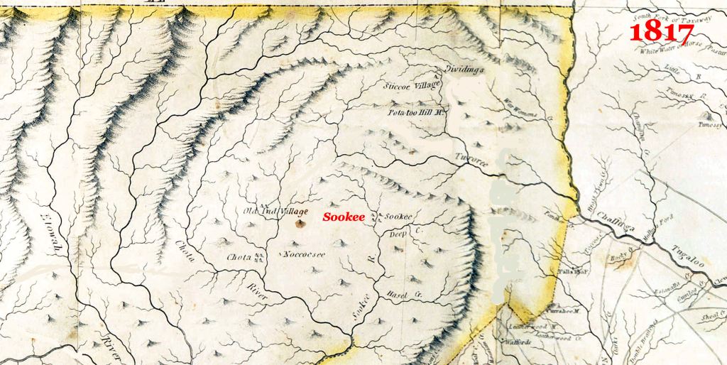 This 1817 map is the last to show a Sokee village at the headwaters of the Soque River.