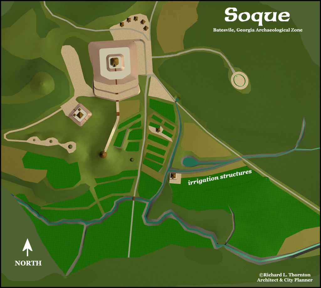 The Zoque Dictionary in Mexico states that the ethnic name means “Civilized People,” but is not able to provide the origin of the word, since its two components have no meaning in the Zoque language spoken today.  That is what I put in the recently published, Native American History of Georgia.  However, both in Mexico and in Georgia individual divisions of the tribe pronounced their name either Zjō : kē, Shō : kē  or Sű : kē.    That is the reason for the variations in spelling their name on the landscapes of both Georgia and Mexico.