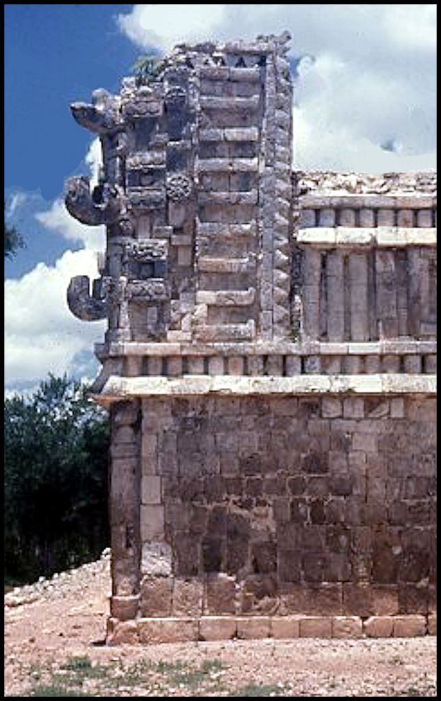 The corner decorations honor the Maya Rain God, Chac.
