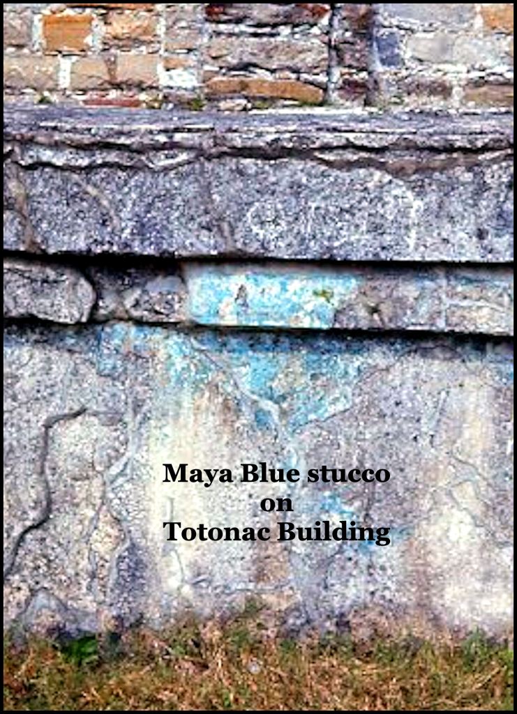 Yesterday, while working on an article on Totonac architecture and a video on the Totonac city of Tajin, I made an astonishing discovery. I was digitizing a color slide that I had not seen since September 1970. It was a close up view of one of the structural details of the Temple of the Niches at Tajin, Veracruz, seen above. At the time, I merely thought it interesting that blue stucco, like I has seen traces of at the Maya city of Palenque, 436 miles (702 km) to the southwest, would still be surviving in the harsh tropical climate of Tajin, Veracruz. Palenque had been incinerated by the super-volcano, El Chichon, in 800 AD. The stucco on this Totonac building could be no older than 1000 AD, possibly closer to 1200 AD, when Tajin was sacked by Chichimec barbarians.