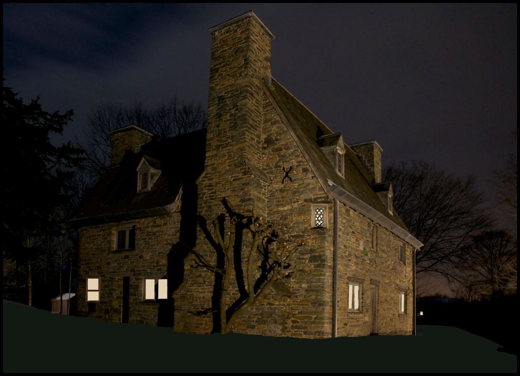 Because there are few bridges across the Shenandoah River in Shenandoah County, it took me about 40 minutes to reach the base of Massanutten Mountain and then zig-zag up the slopes on a one lane road. When I finally reached the cottage, there was a spectacular view of the valley below at dusk and single stone house that appeared to have been built in the early 1900s in imitation of an 18th century house. I got “bad vibes” from the place. Maybe it was because, it was almost dark.