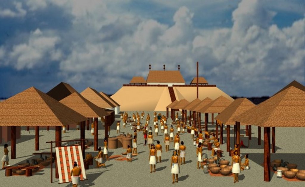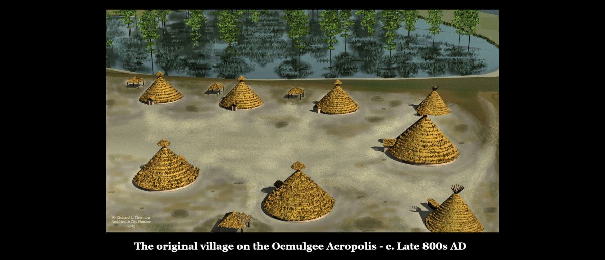 Ocmulgee Acropolis in 1150 AD (model for Muscogee-Creek Nation)