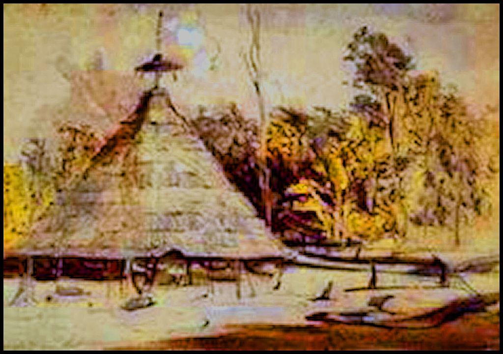 In the 1930s Dr. Arthur Kelly determined that the initial occupation of the Ocmulgee acropolis was defined by asymmetrical clusters of 35 feet (10.7 m), teepee like houses, which are typical of northern South America – but Kelly did not realize that. Kelly did not know anything about South American indigenous architecture and radiocarbon dating had not been invented. He interpreted them as oversized Caddo houses, which were typically about 12 feet in diameter.  Nevertheless, this archaeological fact was recorded in the project’s journal, but was concealed by the Midwestern archaeologists, who in the late 1940s and early 1950s planned the Ocmulgee Museum and wrote its original guidebook.