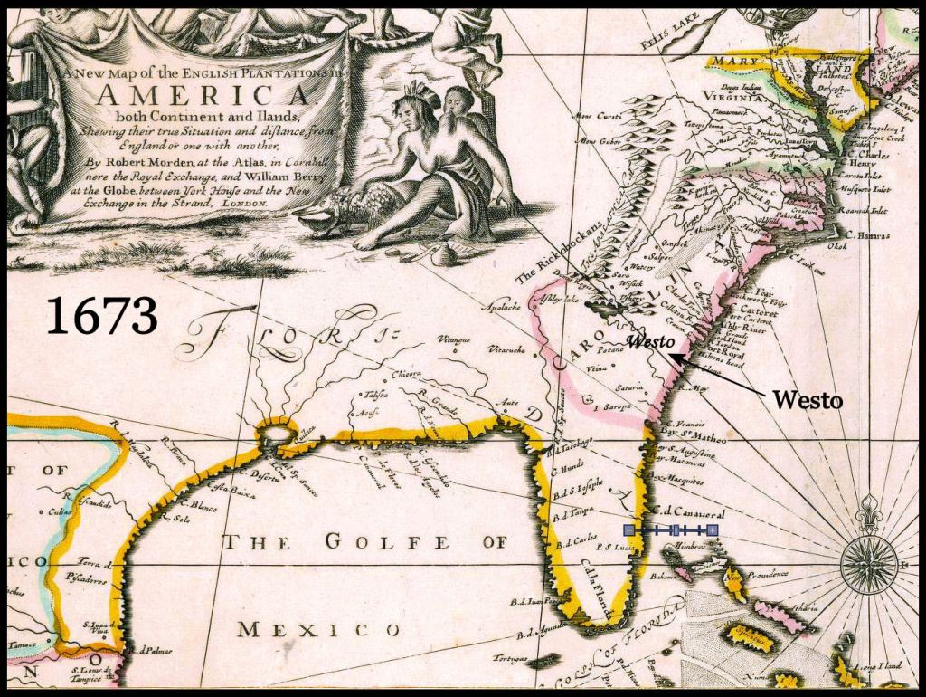 South Carolina did not become a separate colony until 1721. The Creek and Panoan-speaking tribes in the future states of Georgia and South Carolina called the Rickohocken intruders the Weste and their province Westebo, which Carolinians wrote as Westobou. Between 1670 and 1680, the Carolinians called the Savannah River, the Westobou River. Twentieth century South Carolina academicians decided that “bou” meant “river”. It did not. Both in the Panoan languages of the South Atlantic Coast and South America, plus the Scandinavian languages of Europe, the suffix, bo, means “living place of.”