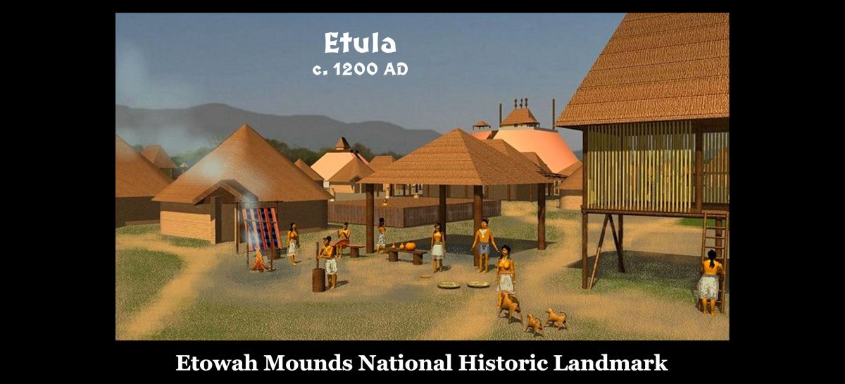 A horrific storm around 1200 AD, flooded both the Lamar Village Site near Macon, GA and the Etowah Mounds Site in Cartersville, GA . . . 126 miles to the northwest. Both villages had been on the end of horseshoe bends in rivers. Afterward, both villages were on islands. Very few, if any, corner door houses were built at Etula (Etowah Mounds) after it was reoccupied. Instead other styles of houses, typical of southern Mexico, were constructed. These will be discussed later in the article.