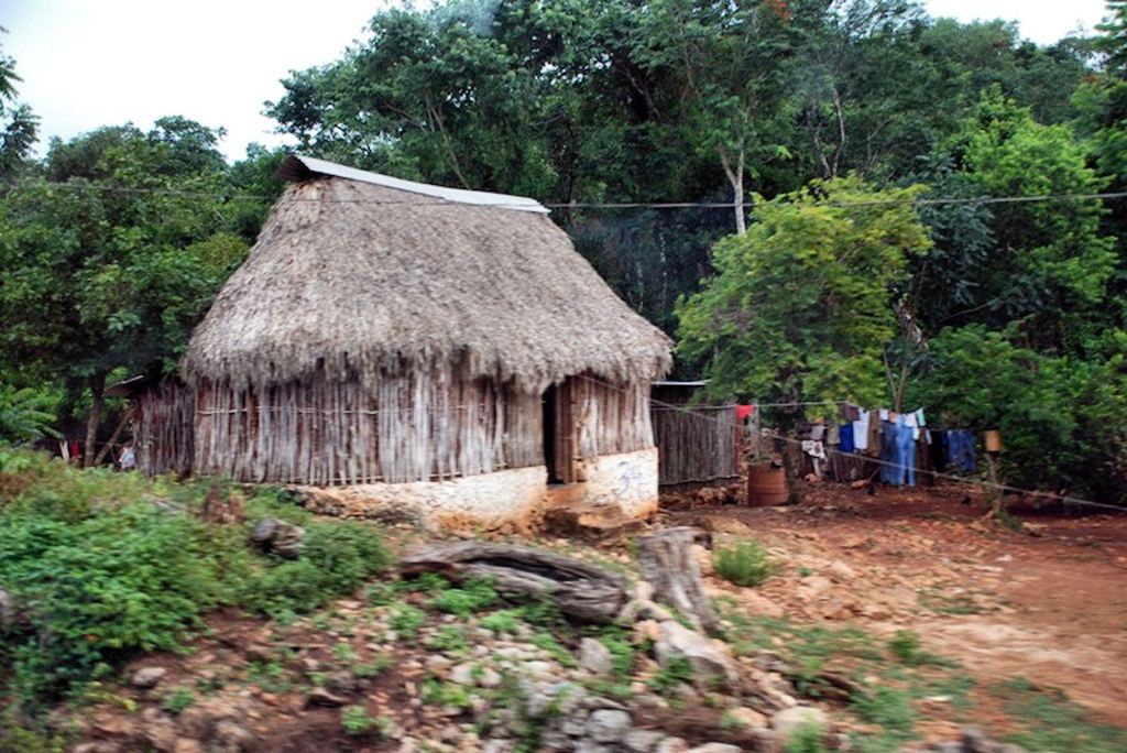 The Puuc Hills are located in eastern Campeche and western Quintana Roo States, Mexico. When I first visited the region in 1970, the predominate house live in by Maya families was an oval shaped structure 20-25 feet (6-7.6 m) by 10-15 feet (3-4.6 m) oval shaped huts. Still today, one can see such houses throughout both states, but they are steadily being replaced by concrete block houses with electricity and plumbing in urban areas.