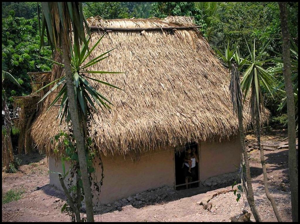 Whether in Southern Mexico or in the Muskogean regions of the Southeastern United States, these houses were always of timber-framed wattle and daub construction. They became the inspiration for the stone masonry houses of government officials and priests in the capitals of Classic Period city states.