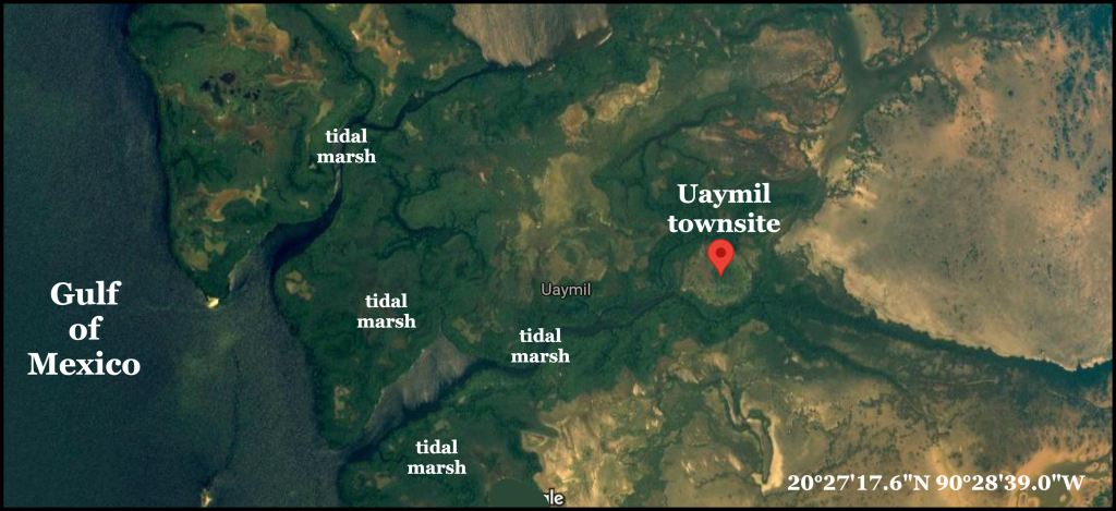 Eventually, the pond filled with sediment and detritus from the village. This dark sediment is still visible today on satellite imagery. Around 1400 years ago, Yokot’an Peoples (Chontal Maya) began establishing villages farther north from their original Tabasco Tidal Marshes homeland. More urbanized branches of the Maya avoided living near the ocean. Thus, there were unoccupied lands available to the Yokot’ an.