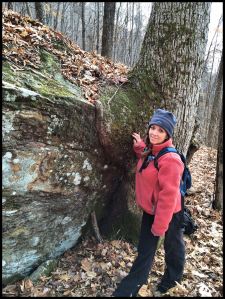 This pretty Creek sister from Northeast Georgia, climbed 800 feet up the slopes of Buzzard Roost Mountain in sub-freezing weather to help us survey the upper irrigation reservoir and royal tomb complex. We also discovered that our ancestors had built a road along the ridgetop. Her motive? She wanted to see Track Rock Gap for herself, but also honor her ancestors, who lived on this beautiful mountain.