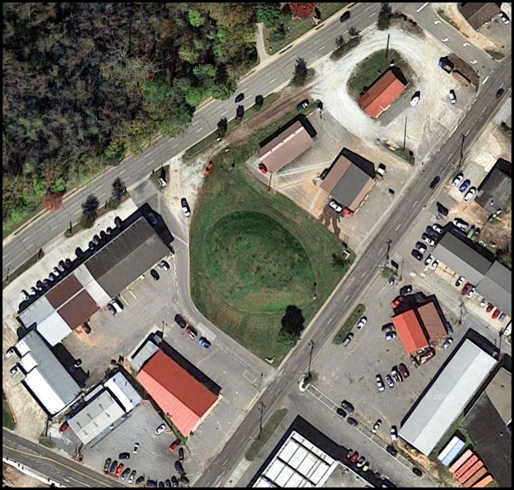 The Nikwasi Mound is located in the edge of the Franklin Central Business District and today, completely surrounded by low density urban development. From 1946 to 2019 the mound was owned by the City of Franklin. It is now owned by a non-profit foundation, The Blue Ridge Initiative.