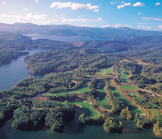 Little Tennessee River Gorge exactly matches the terrain around Chiaha. Several islands were covered by Fontana Lake.
