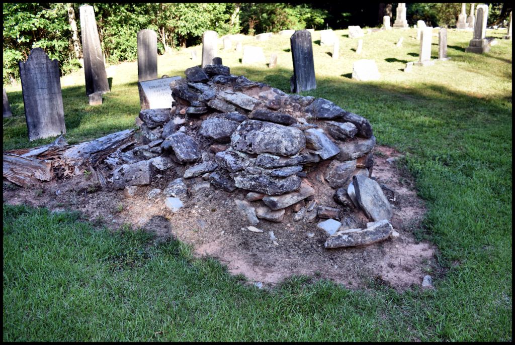 There were two websites on the subject by non-archaeologists.  Both described one or two such structures being found in some Colonial Period cemeteries within the Southeastern Piedmont.   However, these were substantially smaller than those at the Nacoochee Cemetery.