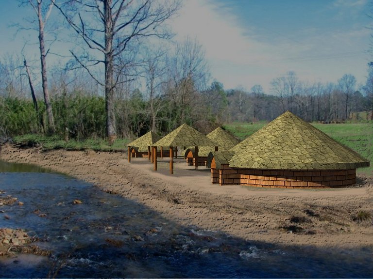 In the mid-1990s, archaeologists with Brockington and Associates excavated a Ufale village in Douglas County, GA (SW Metro Atlanta). It was within an established Creek-speaking province. However, the Ufale lived in round pit-houses, not rectangular Mesoamerican style chiki’s like most Creeks. However, their pottery was a simplified version of classic Lamar Culture ceramics, which typified the ceramics of a vast area of the Southeast, ruled by the Kingdom of Apalache in the 1600s. As the reader will soon learn, North Carolina archaeologists are now labeling all round Uchee houses in North Carolina as being “Early Qualla Phase Cherokee houses.”