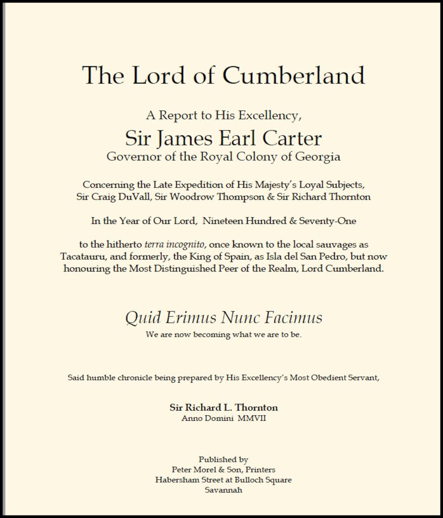 Excerpt from the book, The Lord of Cumberland (2008) by Richard L. Thornton