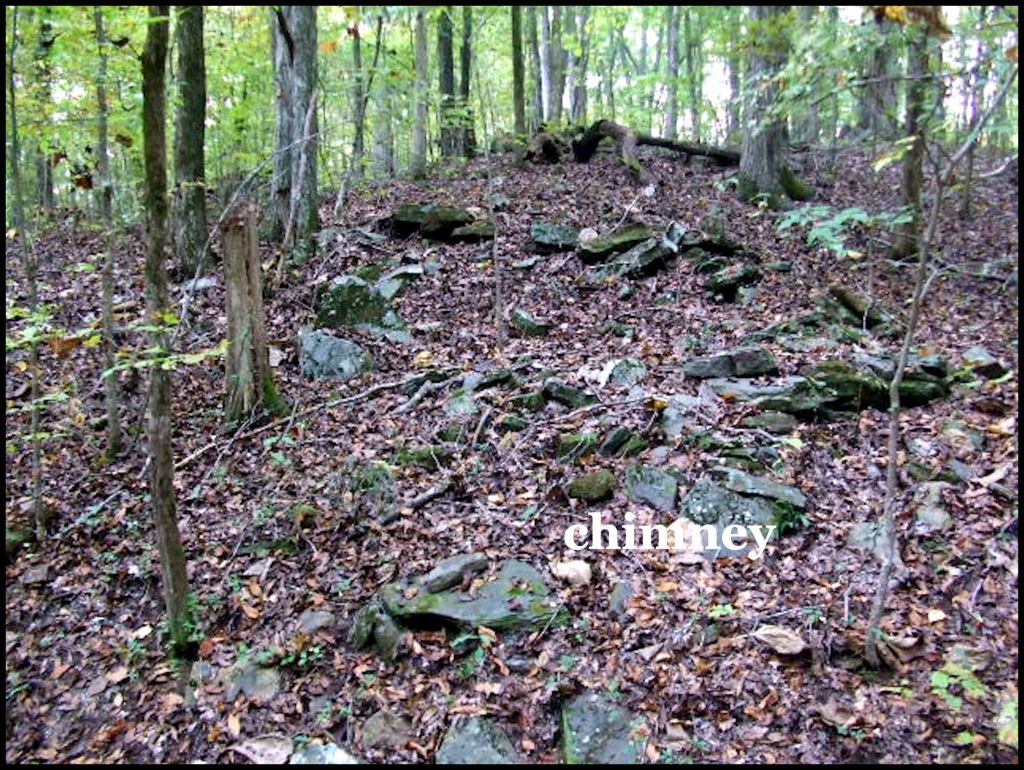 Ancient ruins of a European style house at a terrace complex on the side of Sal Mountain in the Nacoochee Valley. Almost everyone of the terrace complexes that I have identified in northern Georgia contain at least one ruin of an European house. I have never seen a chimney in an Indigenous American house anywhere in North America, built before the late 1700s. The Creek towns and terrace complexes in the Nacoochee Valley were abandoned at some time between 1696 and 1715.
