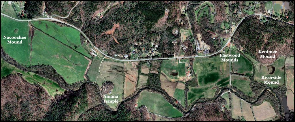 I will be posting more images that are actually frames for a documentary video, as they are completed. I am very busy, so will not include much text. Below are satellite images that will orient you to the relationship of the Temple of Amana to other archaeological sites in the Nacoochee Valley.