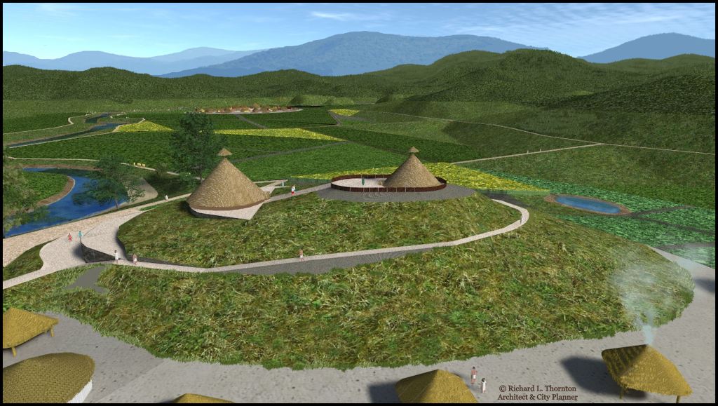 As stated in the original article that began this series on the Nacoochee Valley, 20 years ago, when I first began to apply the Artlantis Virtual Reality program to Historic and Pre-Historic structures, my biggest technical challenge was realistic portrayal of the agricultural fields and natural vegetation around the town sites.