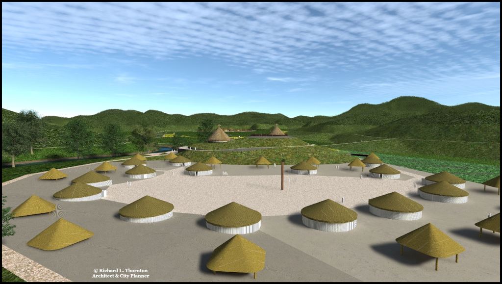 One cannot understand how people lived in these Native American towns unless one understands the environments around these towns. As a result, my renderings of Native American communities have a very different feel than those, which French architects produce for new buildings.