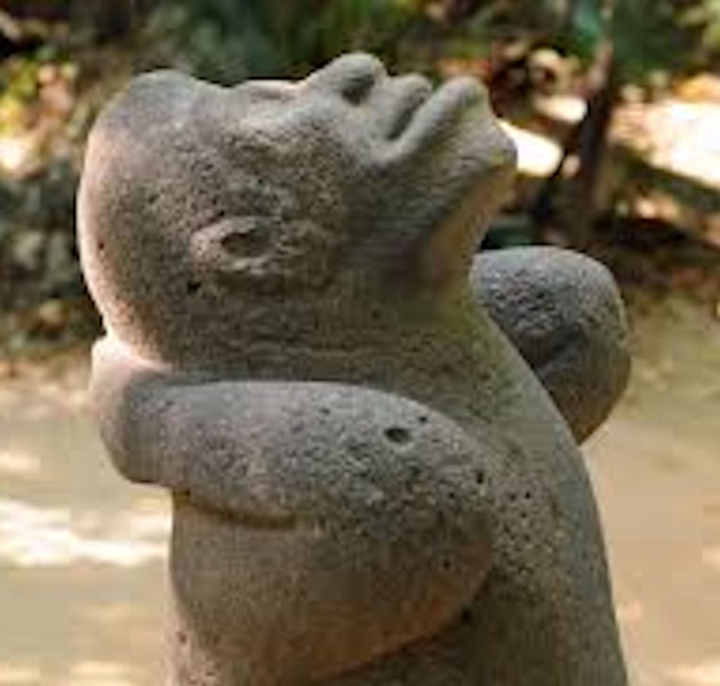 This stone sculpture was photographed at the remote “Olmec Civilization” town site of La Venta in the coastal plain forests of north central Tabasco. It appears to be a Homo Erectus man, with his hands bound behind his head. I noticed that it did not have a tail and did not resemble the monkeys living in southern Mexico and Central America today