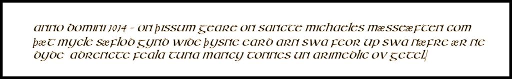 “1014 AD – This year, on the eve of St. Michael’s day (September 28 – Julian Calendar), came the great sea-flood, which spread wide over this land, and ran so far up as it never did before, overwhelming many towns, and an innumerable multitude of people.”