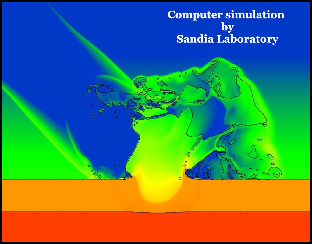 The recent computer simulations by the Sandia National Laboratory found that superheated steam, ammonia and the solid particles within a comet would be ejected at sub-orbital velocities into the edge of the exosphere (space.) This would cause them to be more equally spread around the globe than the pollution from volcanoes. The combined effect of both the comet and the volcanoes would be sufficient to cause a Little Ice Age on earth AND chemically disrupt the photosynthesis of plants for many decades. The presence of ammonia high in the atmosphere would explain the blue haze that enveloped Earth for several years after the 1014 AD.