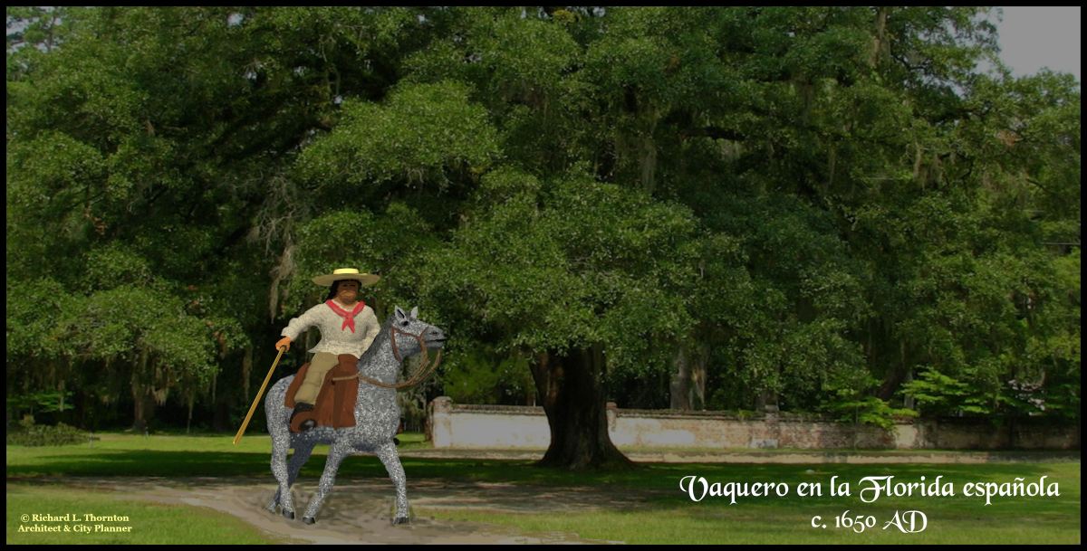 I did a bit of research before creating the Vaquero computer model. The horse is a gray Andalusian, It is a medium-sized, compact breed, accustomed to hot weather. This made the Andalusian well-suited for herding cattle in Florida.
