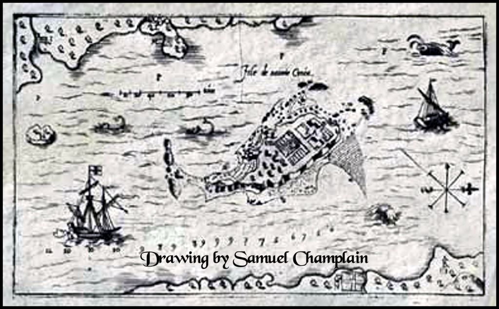 At the end of June, after exploring the mouth of the St. John River, the group arrived at Passamaquoddy Bay. Here they found an island situated inland near the confluence of three rivers. Blessed with an abundance of resources, especially herring and bass, and easily defended against possible attack, it seemed a promising site for a settlement. De Mons named the island Île-Sainte-Croix.