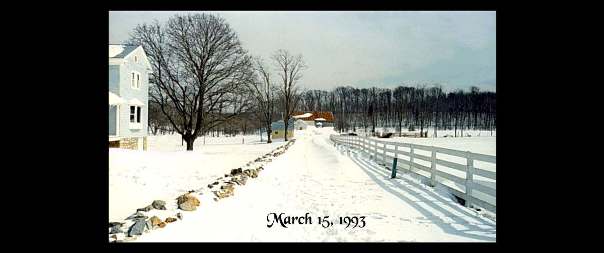March 12, 1993 – The lush grass of our Shenandoah Valley pastures had sprouted up along Toms Brook. We thought that winter was just about over. We were oh so wrong!