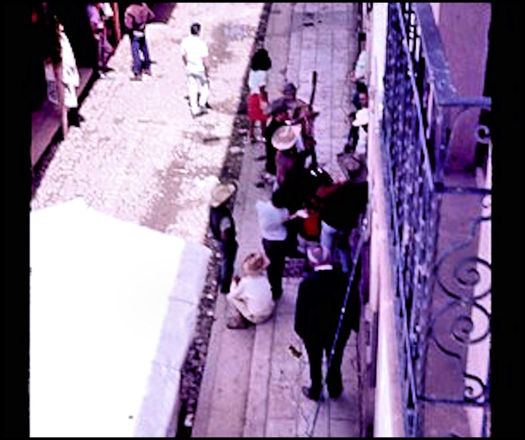 I apologize for the fuzzy photo. It was getting near sundown and I knew that they would not like me using a flash on my camera. Later a couple of youngsters around 10? years old joined in the fun. Impromptu street music and dancing is a norm in most Mexican towns. Sometimes, you will even see it in Mexico City and Guadalahara. I don’ t know that it is still the case, but about 25 years ago I also saw such informal celebration of traditional music in the Cajun towns of southern Louisiana.