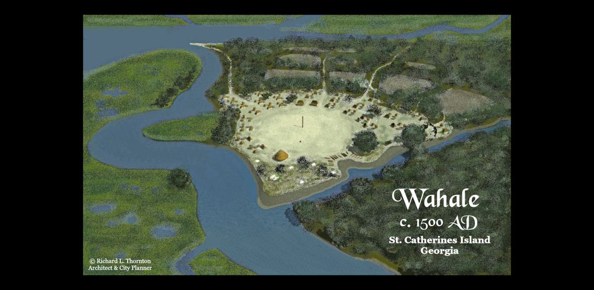 Guale is the Late Medieval Castilian spelling of the Coastal Muskogean word, Wahale . . . which means “Southern People.” The Wahale moved southward from near the mouth of the Savannah River to St. Catherines Island, Georgia around 1500 AD. All other tribes along the Georgia Coast, south of the Ogeechee River, had names, which are translated with Itza Maya, Guarani (South America), Taeno (Caribbean), Panoan (Peru), Middle Arawak (South America) and Southern Arawak (South America) dictionaries. Their architecture was quite similar to a non-Maya people, who lived on the coast of Campeche, until they were decimated by Spanish diseases and weapons.