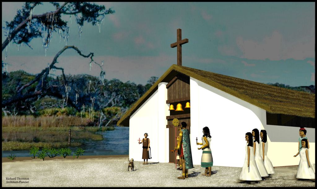 Yet, the only investigation of a Spanish mission and surrounding Native American village in Georgia was carried out by archaeologists, associated with the American Museum of Natural History during the late 20th century and currently by the University of Kentucky on Sapelo Island. In 2007, the AMNH asked me to prepare architectural drawings of what its archaeologists had discovered.