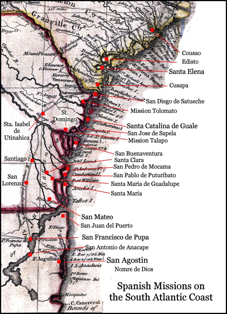 There was a poorly documented effort to convert Natives around the mouth of the Altamaha River with conventional priests, when Fort San Mateo was built in late 1565 and early 1566. Apparently, these priests were killed, when Fort San Mateo was massacred in April 1569. The following year, Jesuit missions were established on Cumberland and Sapelo Islands in 1570, followed by other Jesuit missions on several nearby islands. All of the Jesuits were either killed by the locals or barely got out with their heads intact.